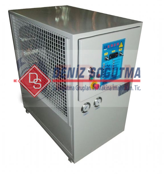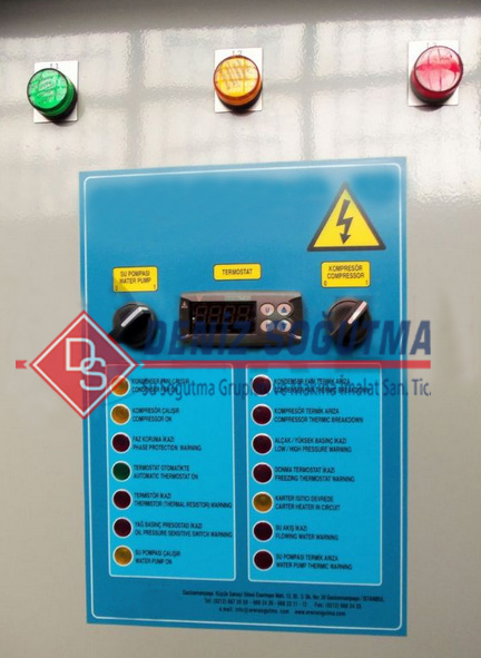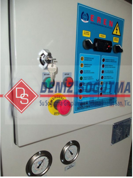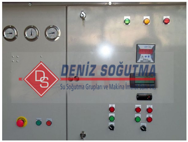 Kompresör: Soğutma sistemi çalışma şartlarına uygun olarak seçilen kompresör , tam kapasite veya kapasite kontrollü olarak kullanılabilmektedir.Çalışma şartları dahilindeki dış hava sıcaklığı , su giriş/çıkış sıcaklığı verilerine bağlı olarak kompresör tipi ve modeli değiştirilebilmektedir.