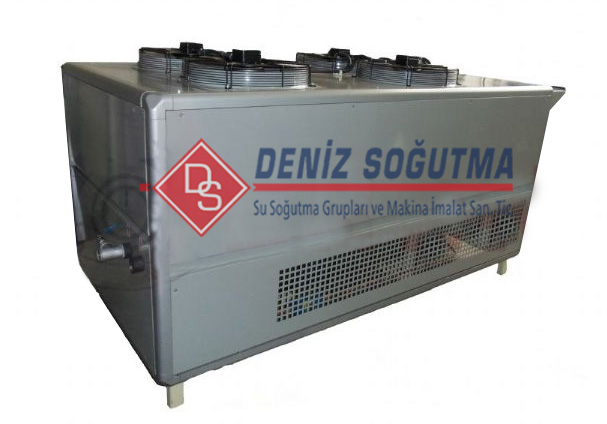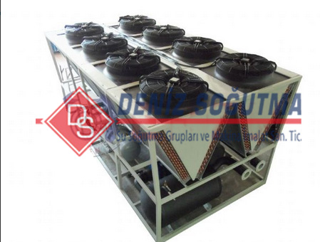 Kondenser: Soğutma sisteminin kapasitesine uygun olarak seçilen kondenserler bakır boru ve alüminyum kanatlı tiptir.Sistem tasarımına bağlı olarak , soğutucu akışkanın maksimum oranda yoğuşması için farklı dizaynda uygulanabilmektedir.Aksiyal fanlar cihaz üzerine veya çalışma mahaline uygun şekilde monte edilebilmektedir.