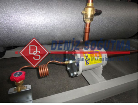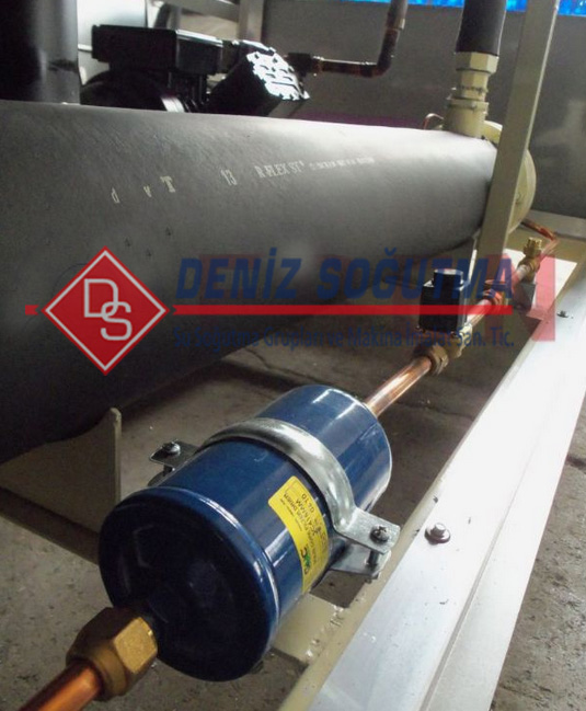 Soğutma Devresinde Kullanılan Elemanlar: Drayer filtre ,solenoid valf,gözetleme camı,expansion valf,kombine prosestat,soğutma valfleri,su akış kontrol otomatiğidir.