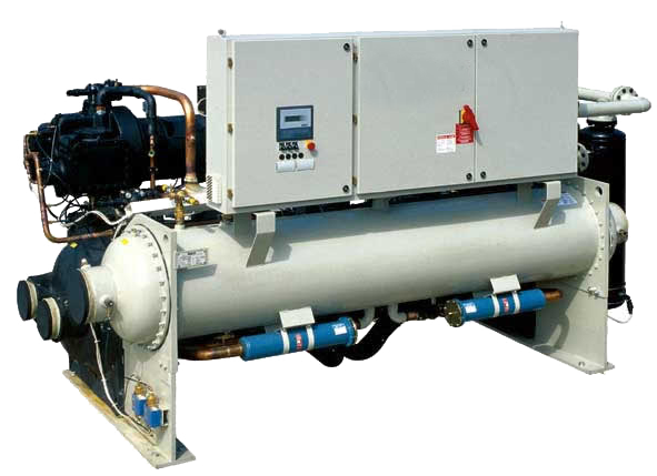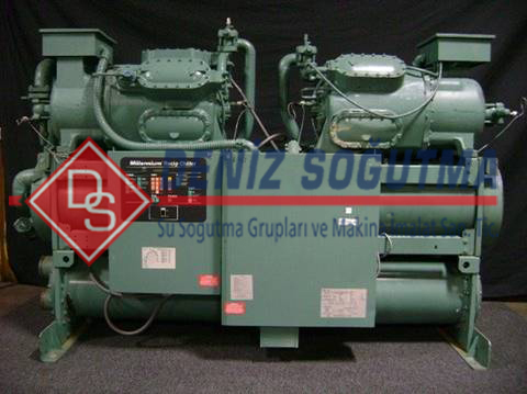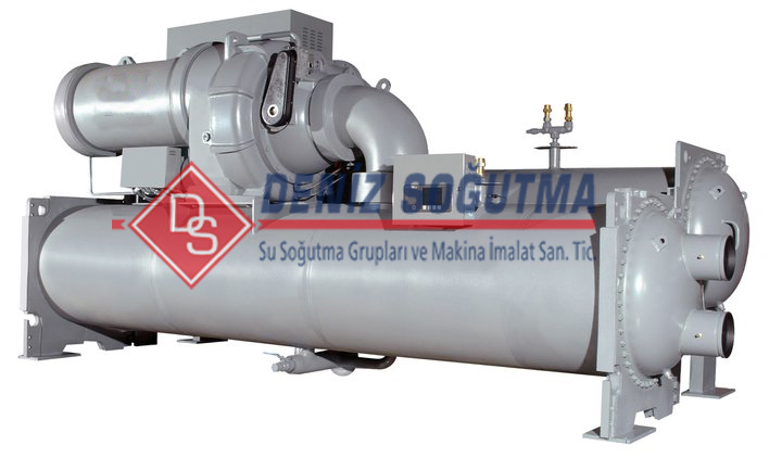 Kompresör:Soğutma sistemi çalışma şartlarına uygun olarak seçilen kompresör , tam kapasite veya kapasite kontrollü olarak kullanılabilmektedir.Çalışma şartları dahilindeki dış hava sıcaklığı , su giriş/çıkış sıcaklığı verilerine bağlı olarak kompresör tipi ve modeli değiştirilebilmektedir.